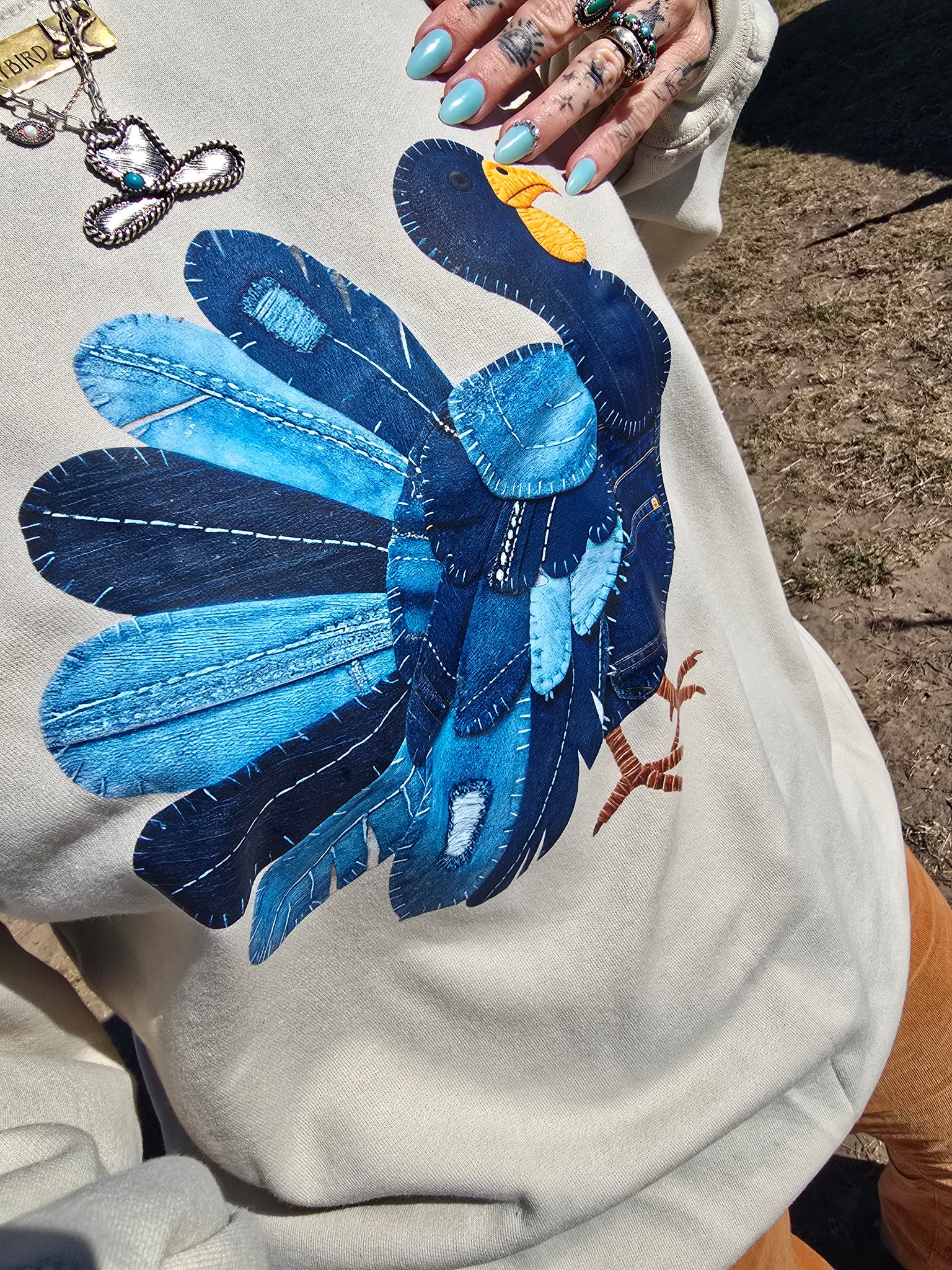 Soft taupe scoopneck sweatshirt with vinyl turkey graphic