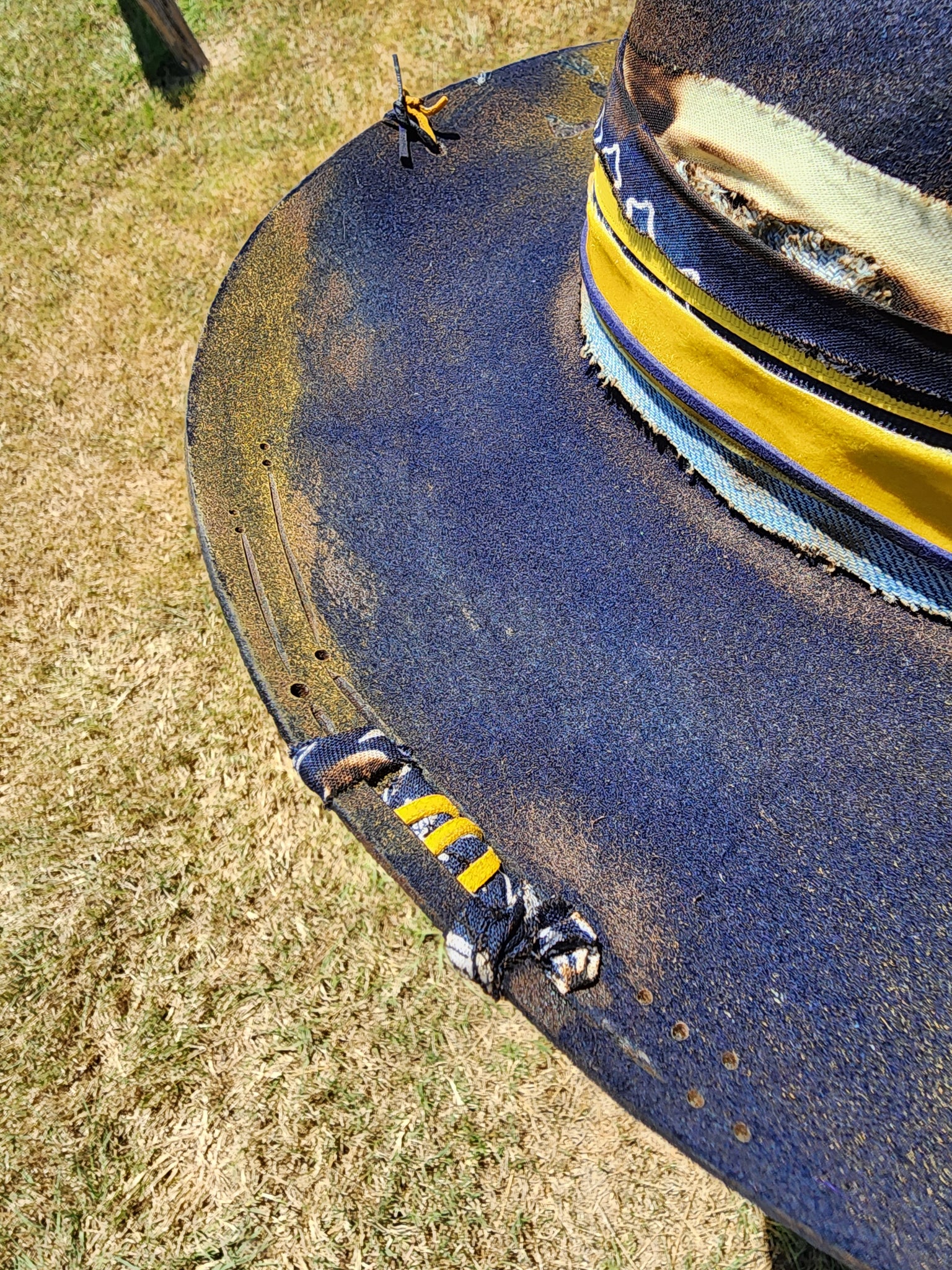 Navy blue stiff brim fedora