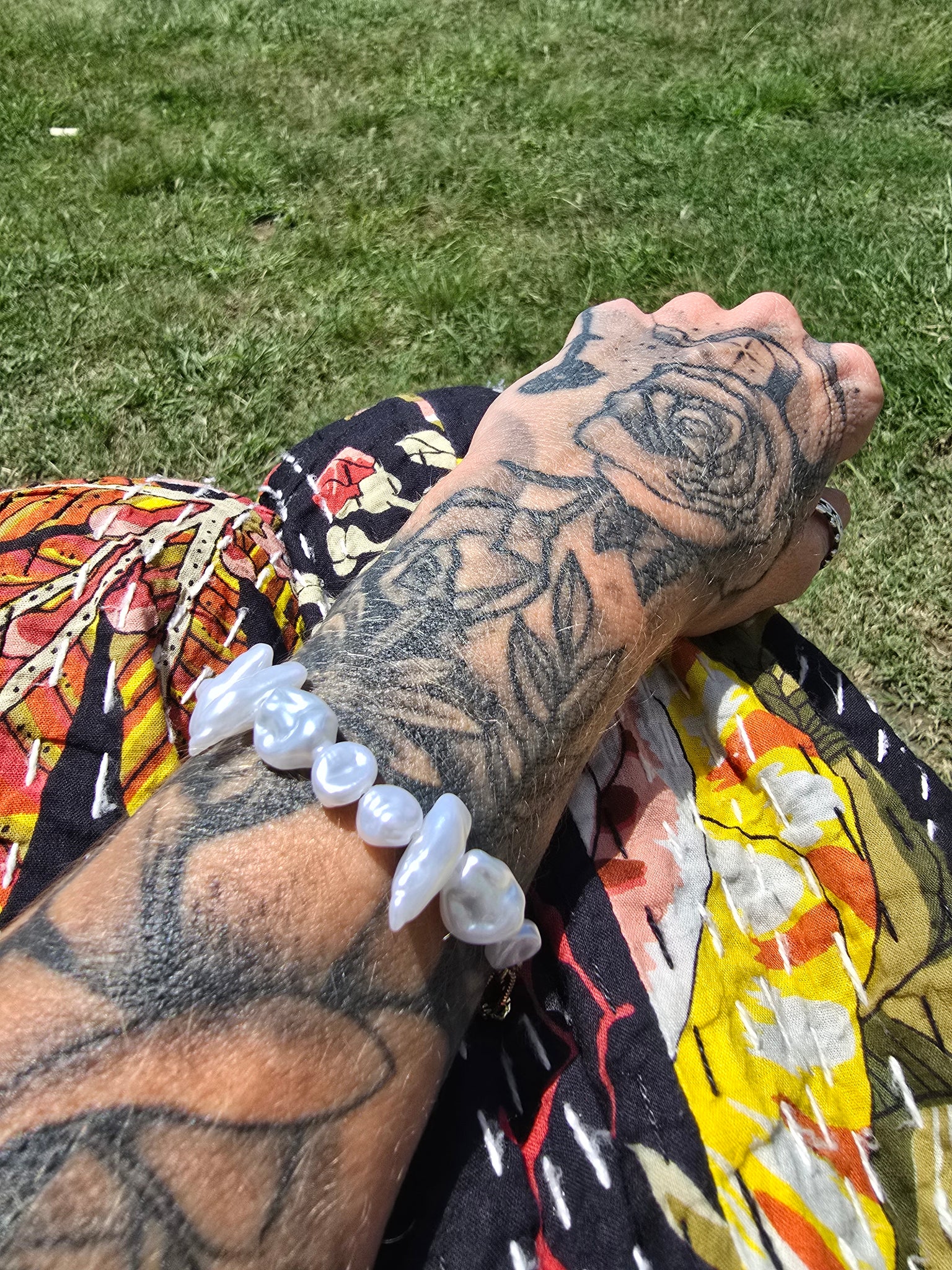 Pretty faux mixed sized bracelet w/ gold link